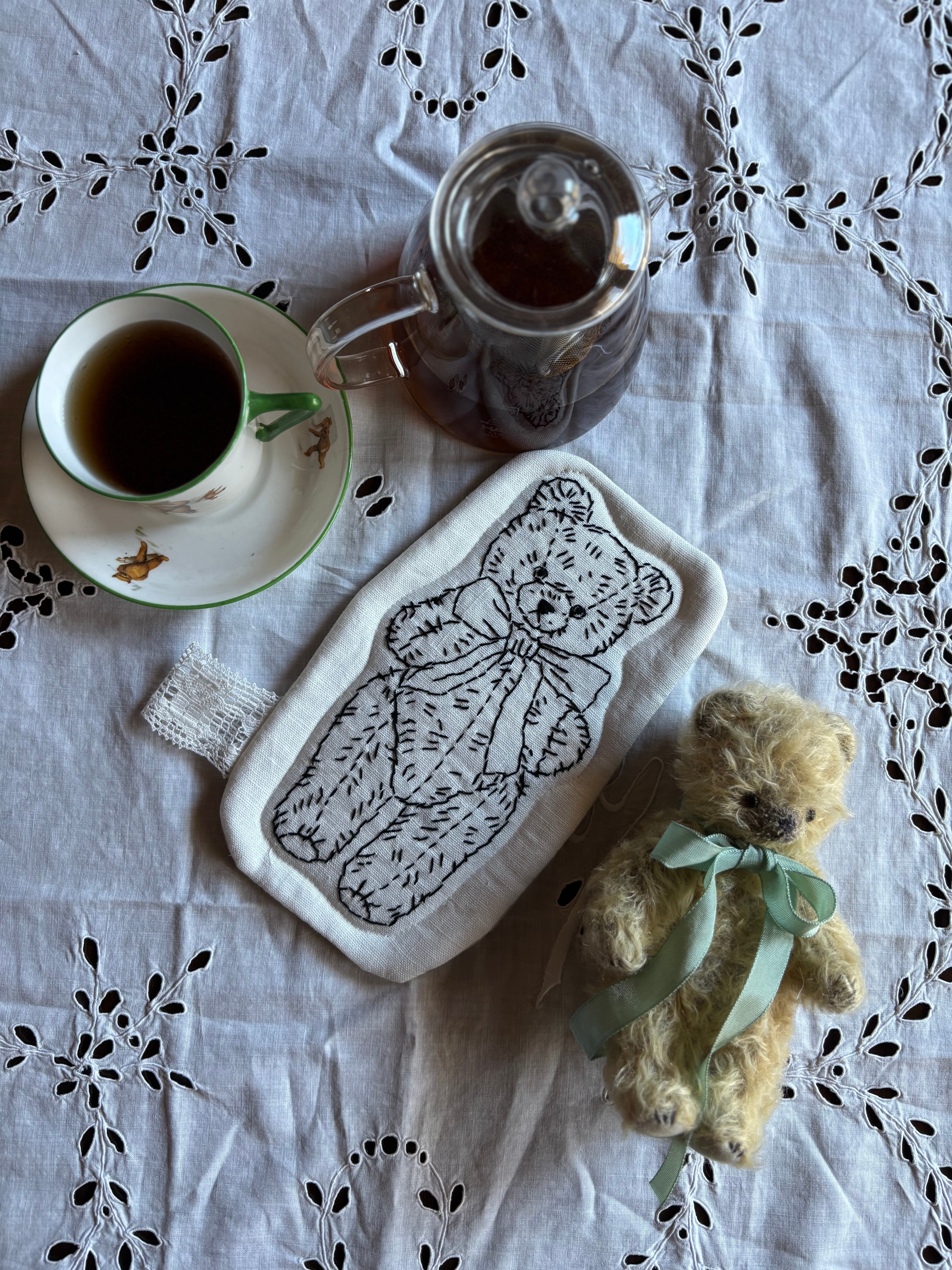 北原廉子さんの`子供部屋の鍵teddybear’を刺繍した