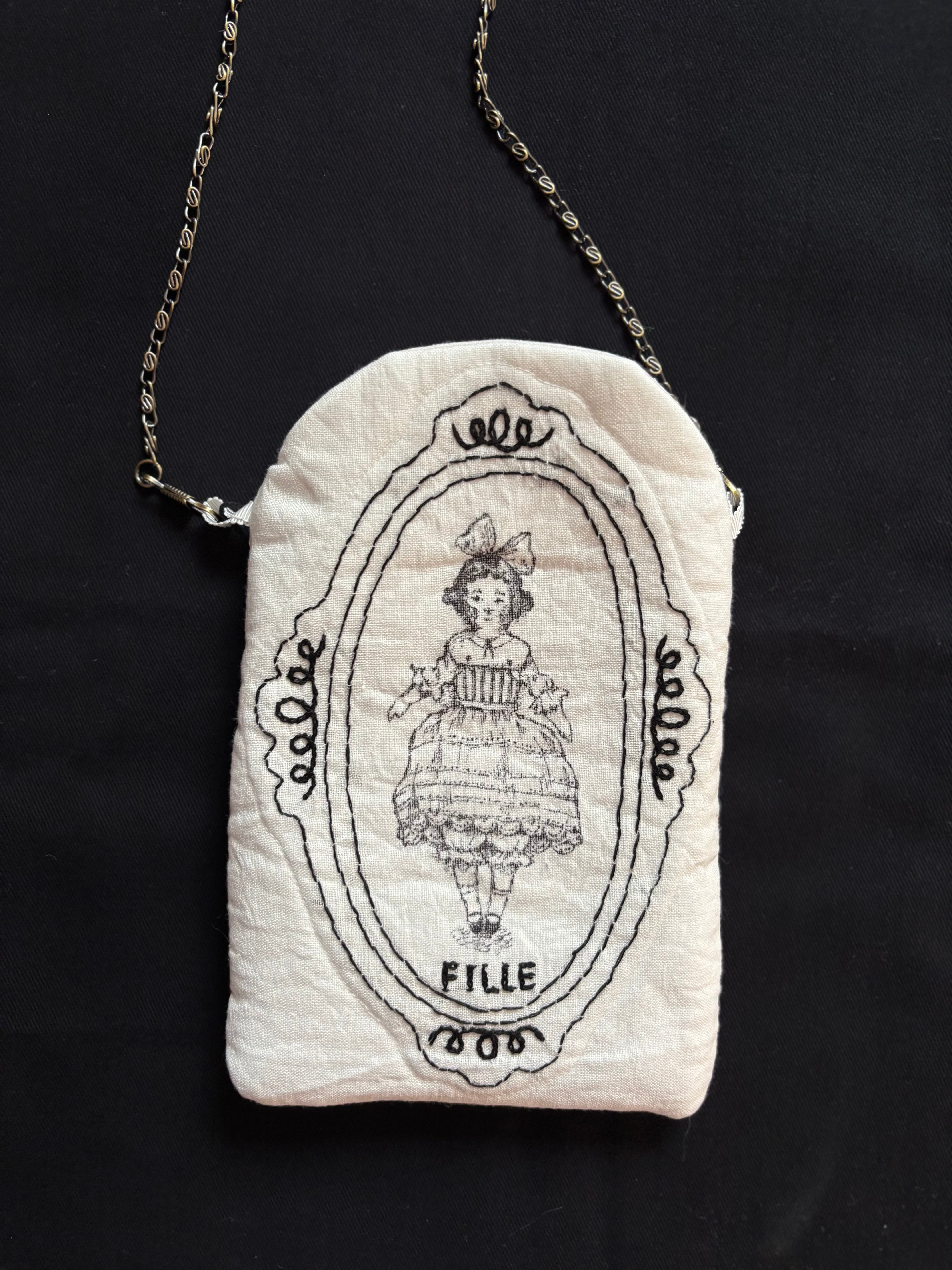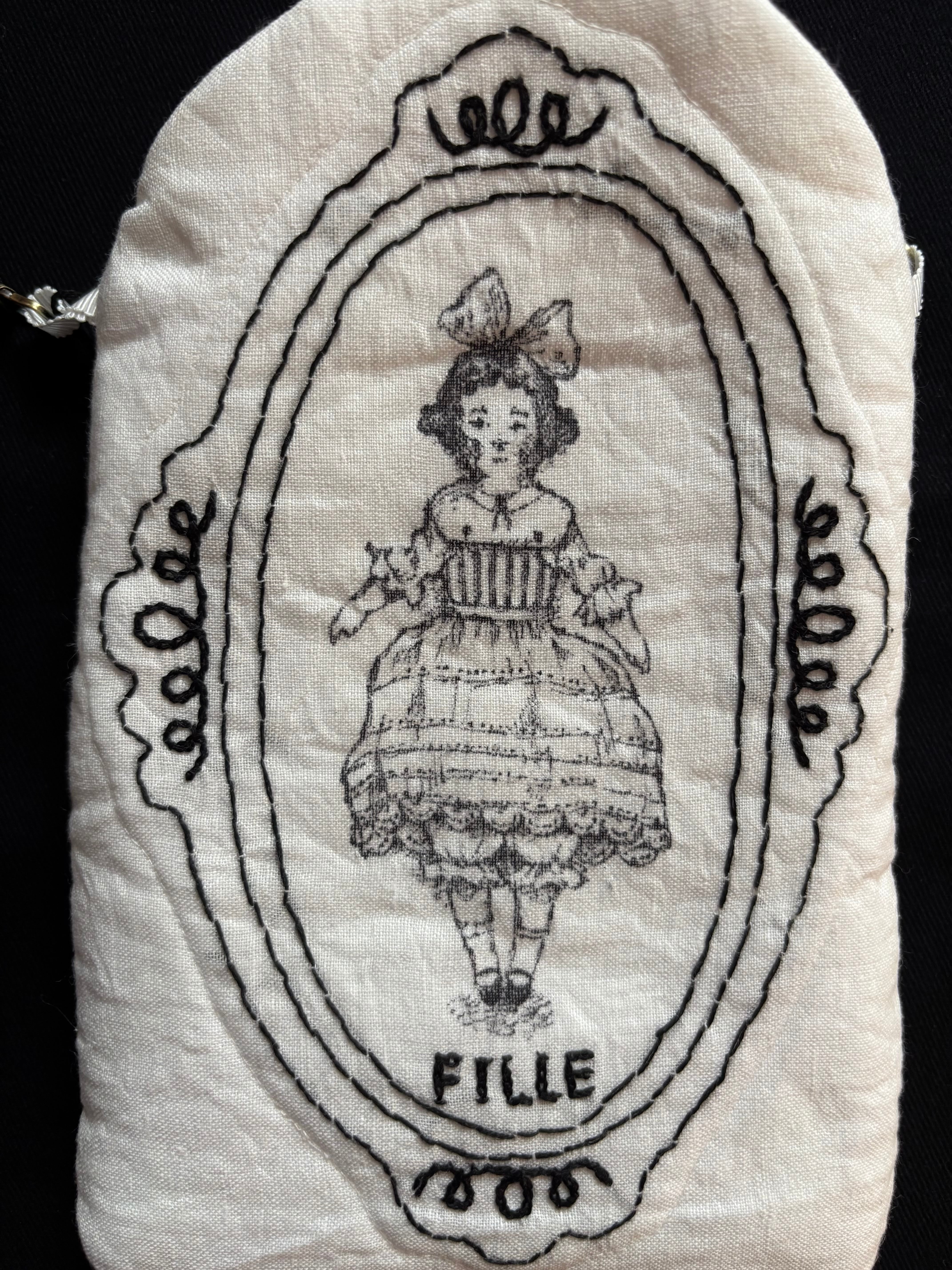 わたしは額縁刺繍をしてこの子に「FILLE」(お嬢さん)
